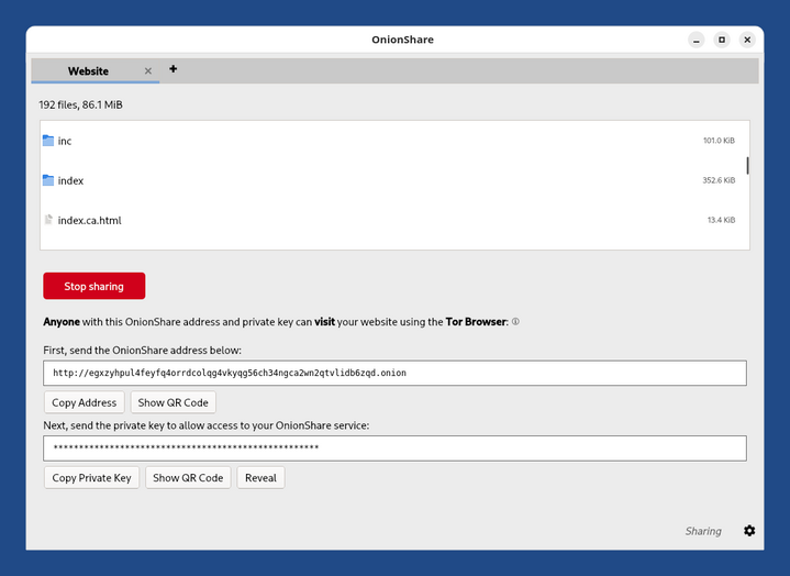 OnionShare utilizza indirizzi onion diversi ogni volta.