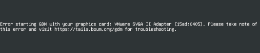Error starting GDM with your graphics card: nom de votre carte graphique [identifiant] (numéro de version). Please take note of this error and visit https://tails.net/gdm for troubleshooting.